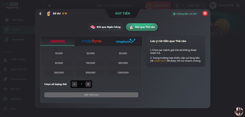 Nhà cái UK88 nổi danh bởi giao dịch rút tiền nhanh chóng. Người chơi dễ...